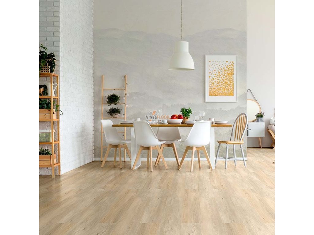 Podlaha Objectline Click 9871 Dub Toledo krémový přináší do interiéru svěží eleganci inspirovanou přírodním dubem. Její krémově béžový odstín s jemnými tóny světle hnědé působí velmi útulně a vzdušně, což z ní činí ideální volbu pro moderní i klasické interiéry. Dekor věrně imituje strukturou i kresbou pravé dubové dřevo, včetně decentních suků a letokruhů, které dodávají podlaze autentický vzhled.