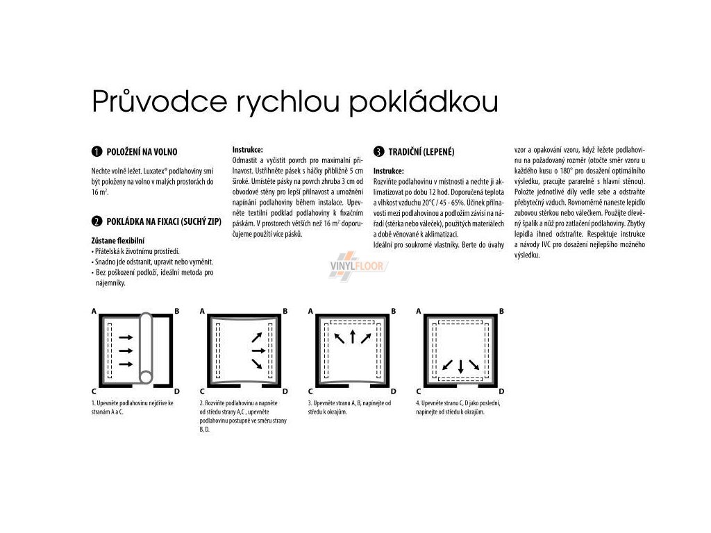 - Do plochy 20 m2 je možno PVC krytinu položit na volno, tedy bez nutnosti lepení.